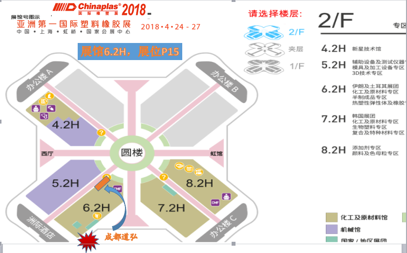 2018年4月24-27日,成都道弘实业有限公司将参加在上海虹桥国家会展中心举办的第三十二届中国国际塑料橡胶工业展览会(CHINAPLAS 2018),这将是我司向全世界商业伙伴展示公司形象和产品实力的绝佳平台。